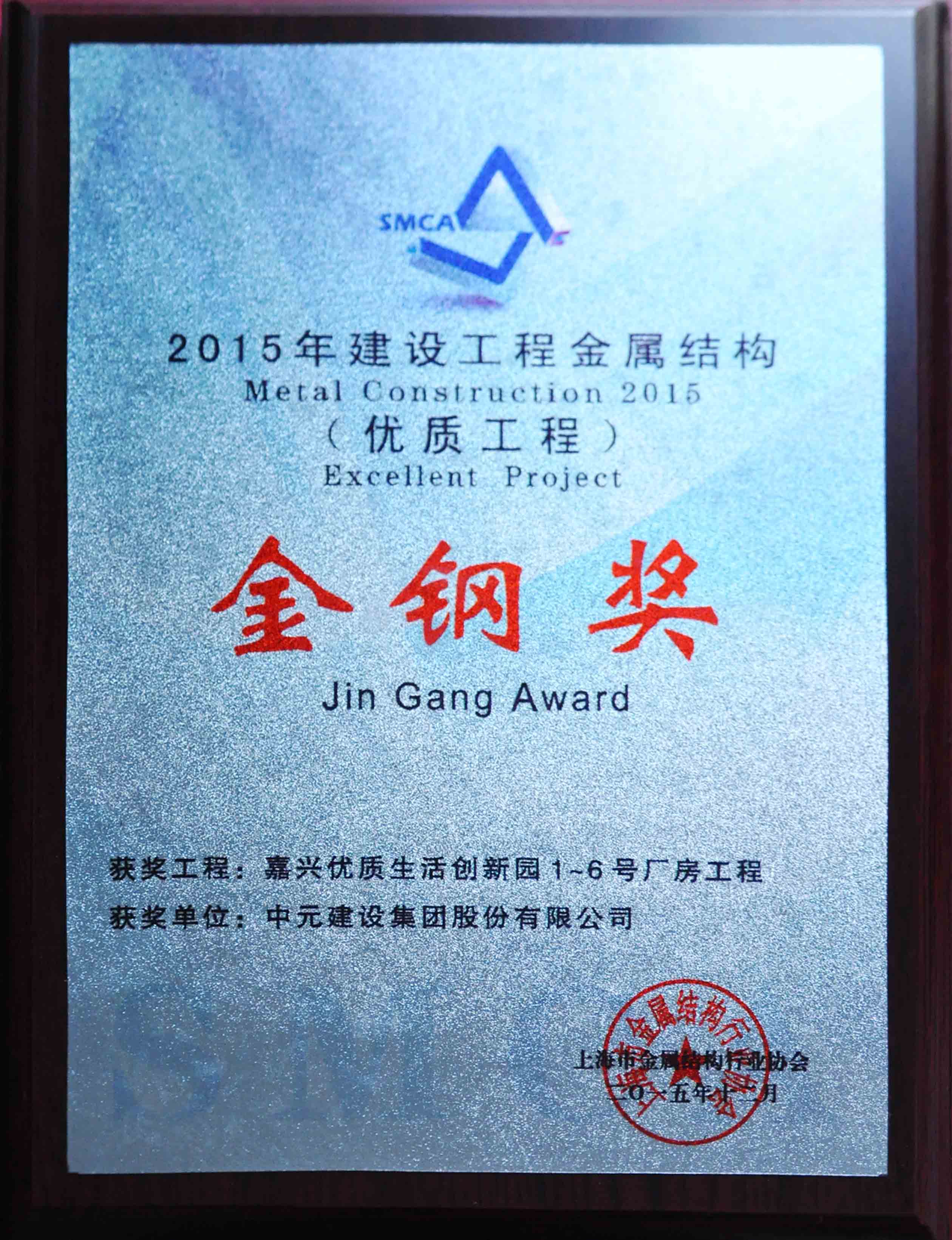 2015年建设工程金属结构奖牌(嘉兴优质生活创新园1-6号厂房工程)