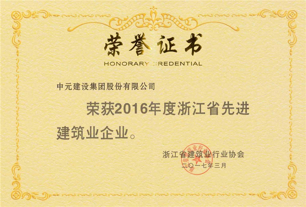 • 2016年度浙江省先进建筑业企业(证书)