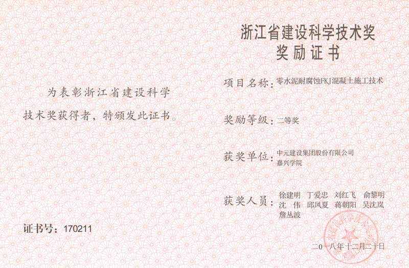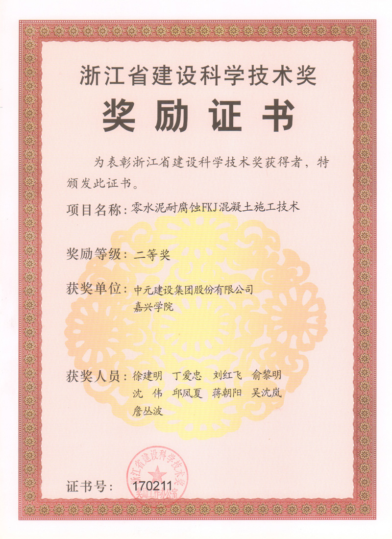 2017年浙江省工程建设优秀质量管理小组(证书)