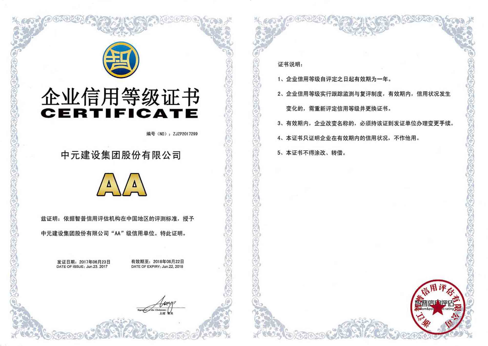 企业信用等级证书(AA)2017.6.23至2018.6.22