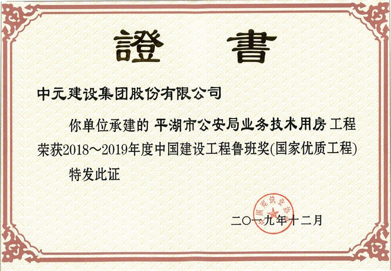 • 2018-2019年度中国建设工程鲁班奖(国家优质工程)(平湖市公安局业务技术用房工程)(1)