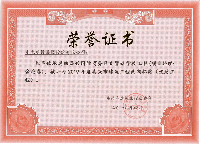2019年度嘉兴市建筑工程南湖杯奖(优质工程)国际商务区文贤路学校工程