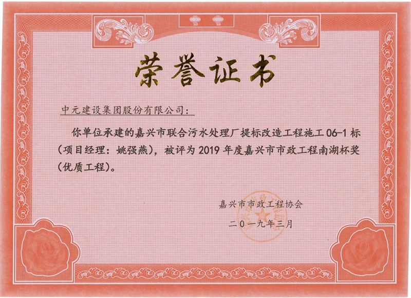 2019年度嘉兴市市政工程南湖杯奖(优质工程)嘉兴市联合污水处理厂提标改造工程施工06 1标