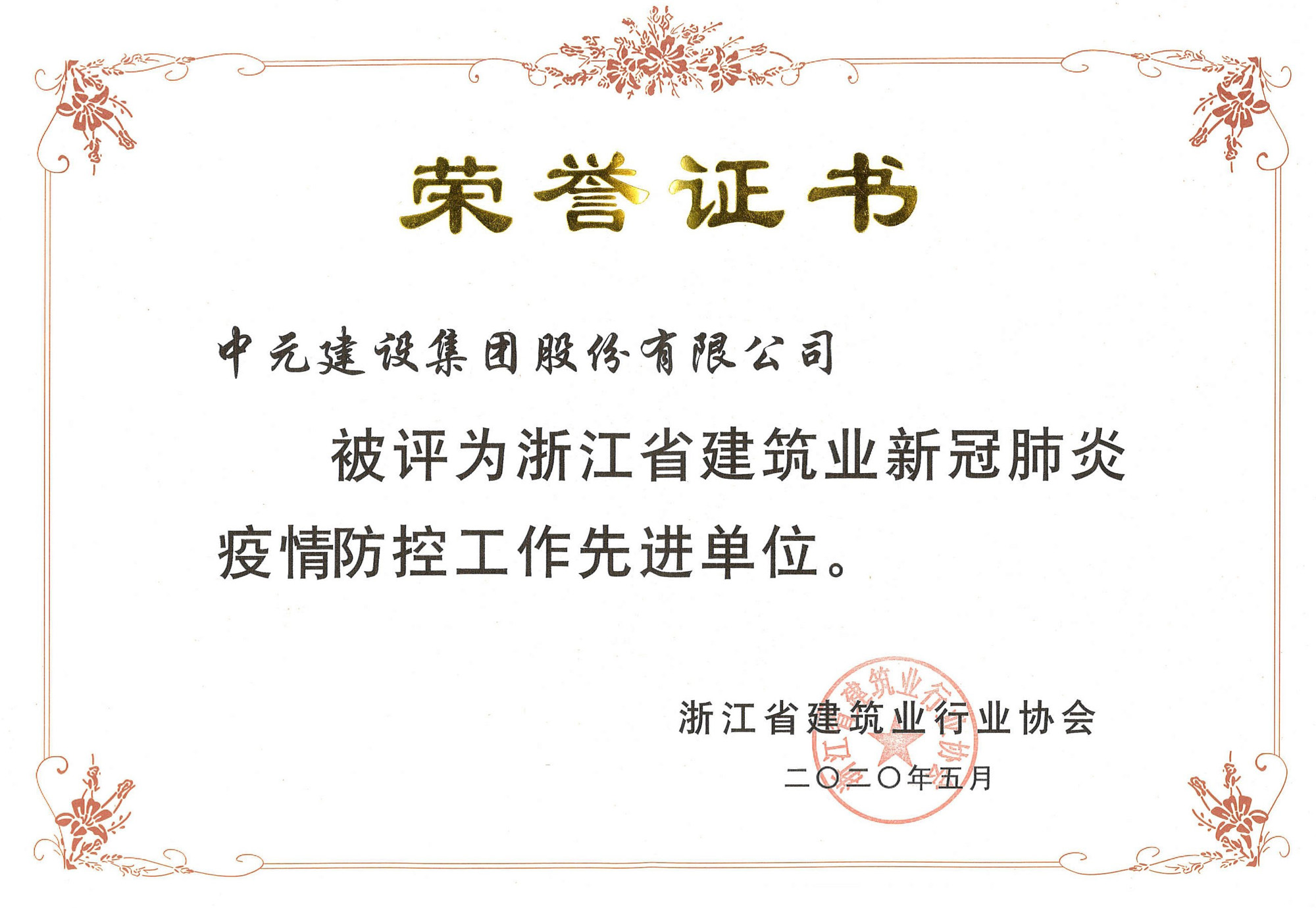 2020年浙江省建筑业新冠肺炎疫情防控工作先进单位