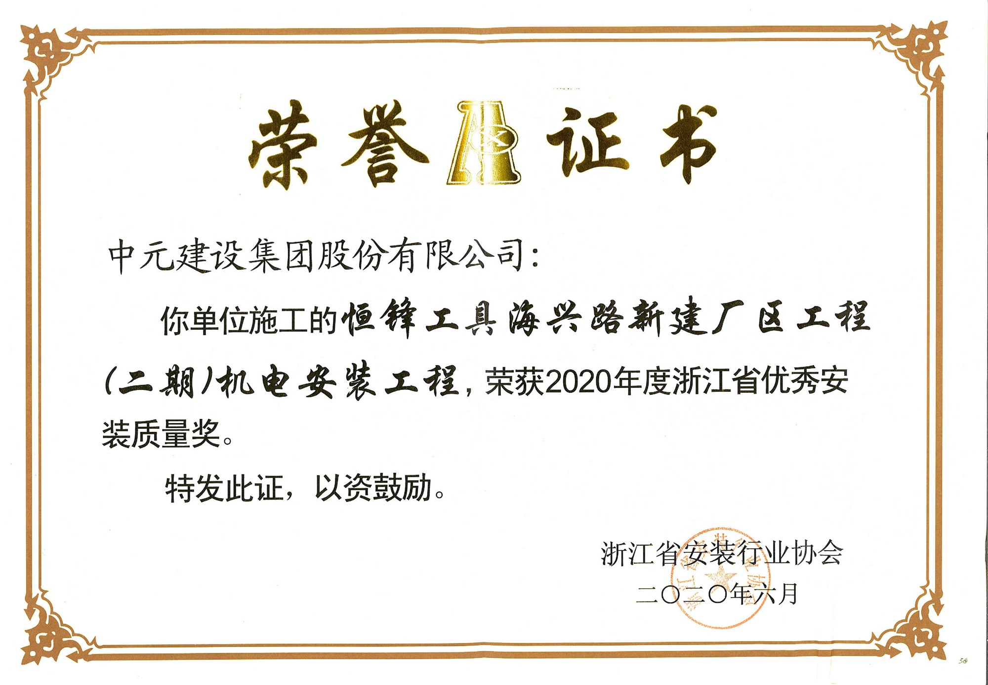 2020年度浙江省优秀安装质量奖(恒锋工具海兴路新建厂区(二期)机电安装工程)
