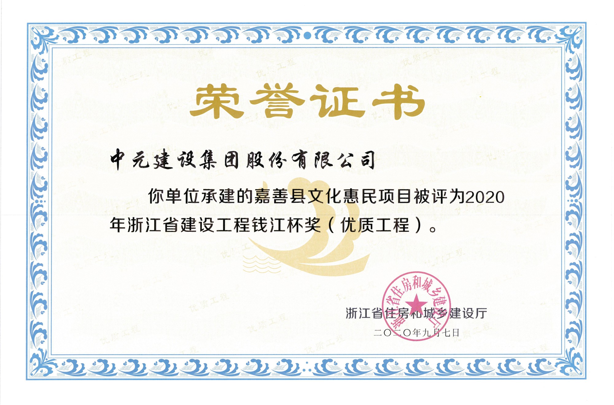 2020年度浙江省建设工程钱江杯-嘉善县文化惠民项目