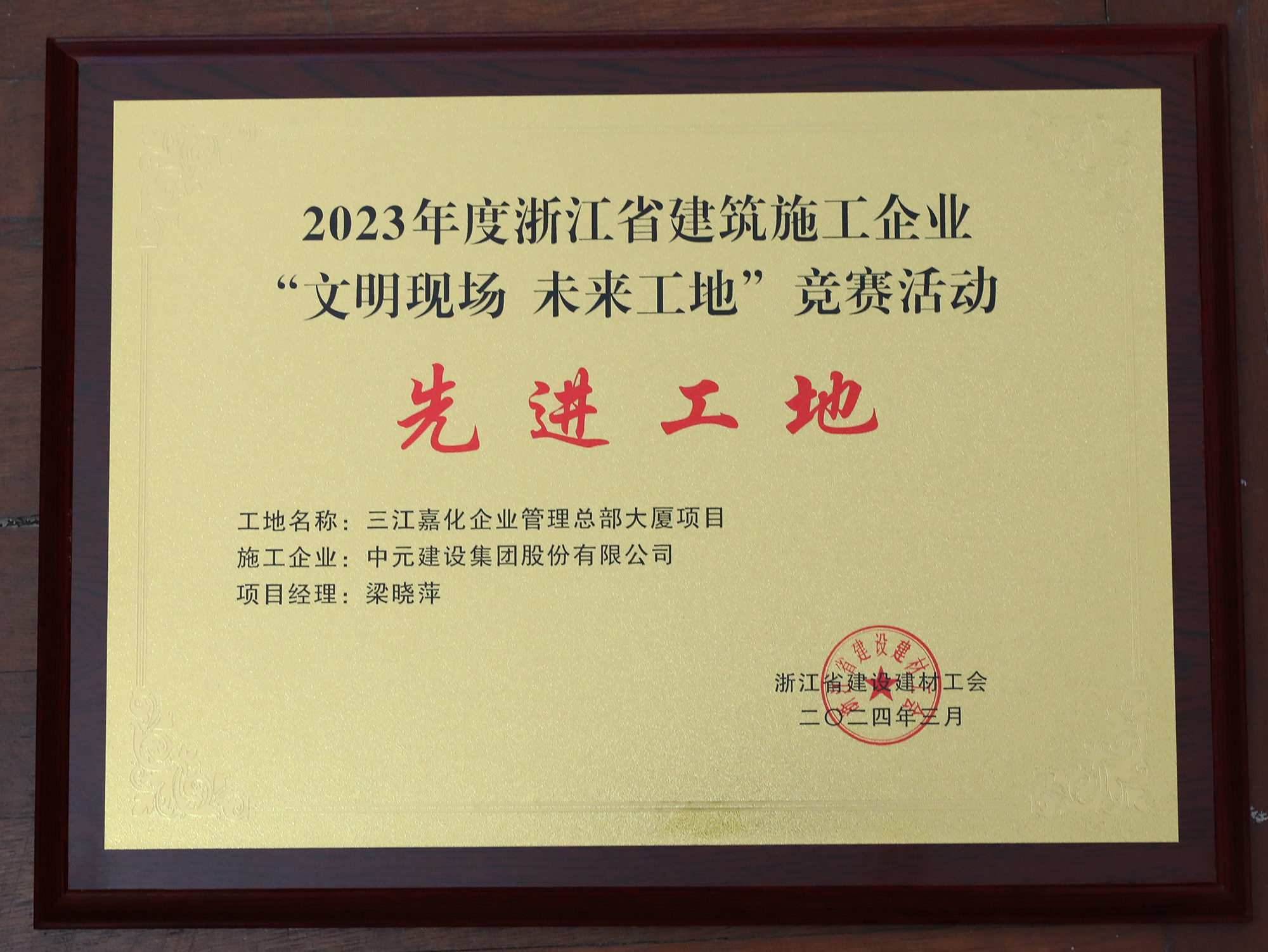• 2023年度浙江省建筑施工企业“文明现场、未来工地”竟赛先进工地(三江嘉化企业管理总部大厦项目)