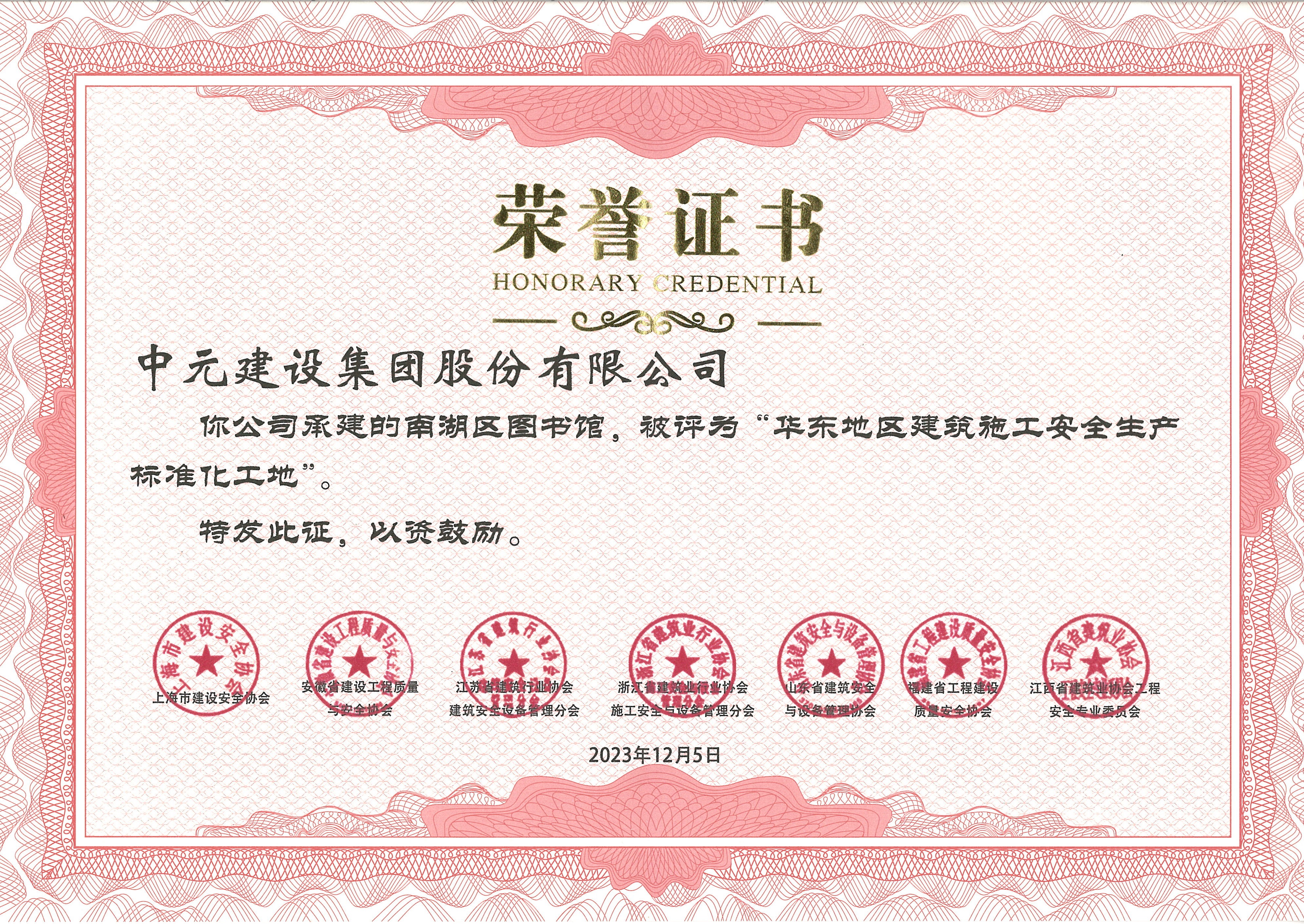 • 华东地区建筑施工安全生产标准化工地(南湖区图书馆)