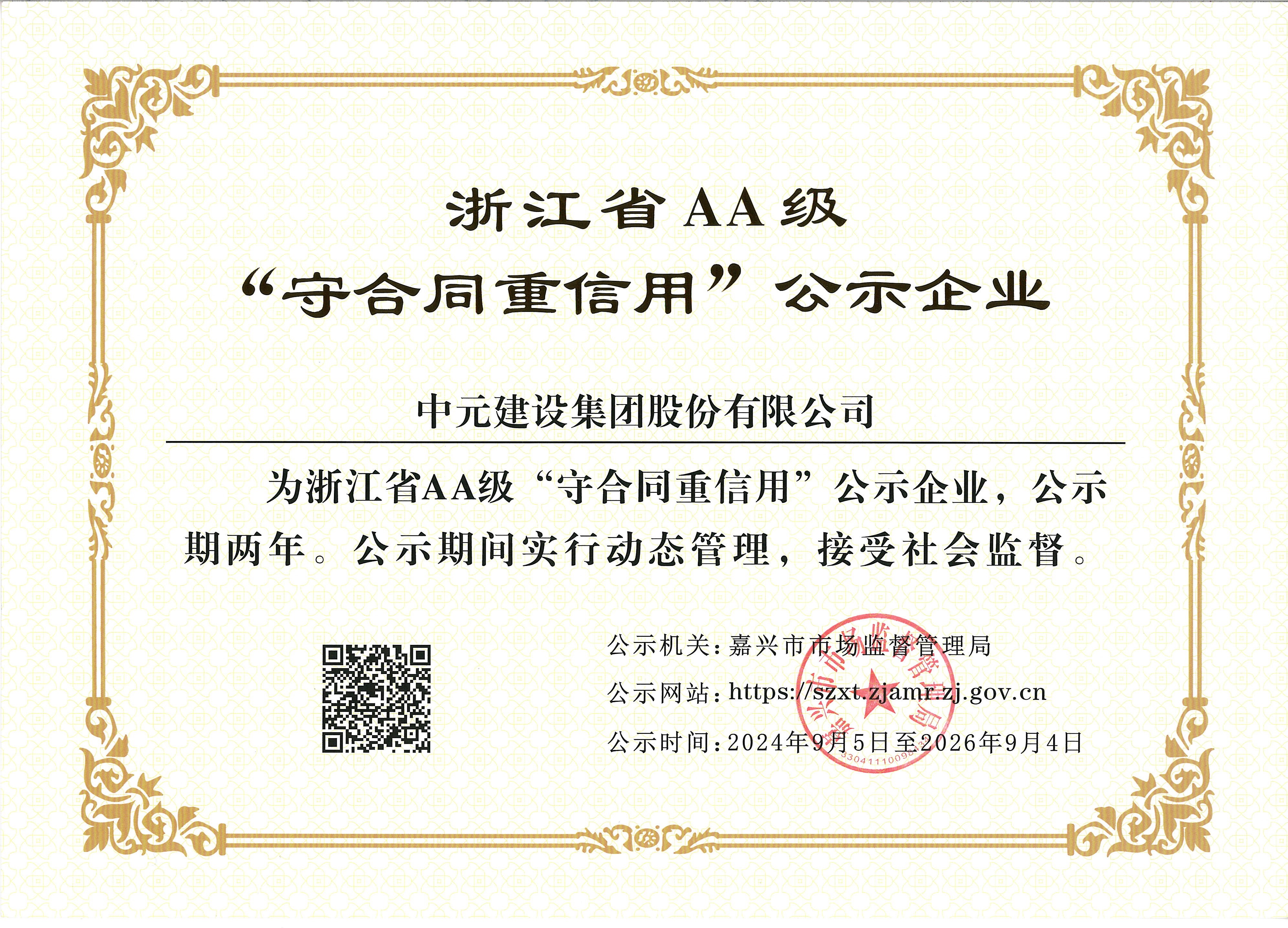 浙江省AA级“守合同重信用”企业