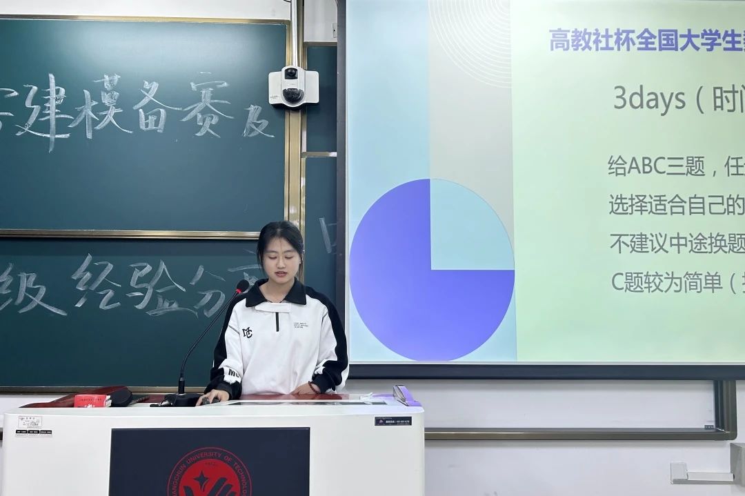 德赢ac米兰官方合作vwin团委讯(通讯员:邝玲玉 任怡静)为了即将到来的统计建模竞赛和未来的数模国赛积累经验,帮助大一大二学子更好地准备比赛,建立良好的学术氛围,鼓励学生们互相帮助、共同进步,德赢ac米兰官方合作vwin学生会于2024年3月14日于主楼201召开数学建模备赛经验分享会。2021级学生杨博钰和林利桁两位同学进行了经验分享,大一大二全体同学参与了本次活动。