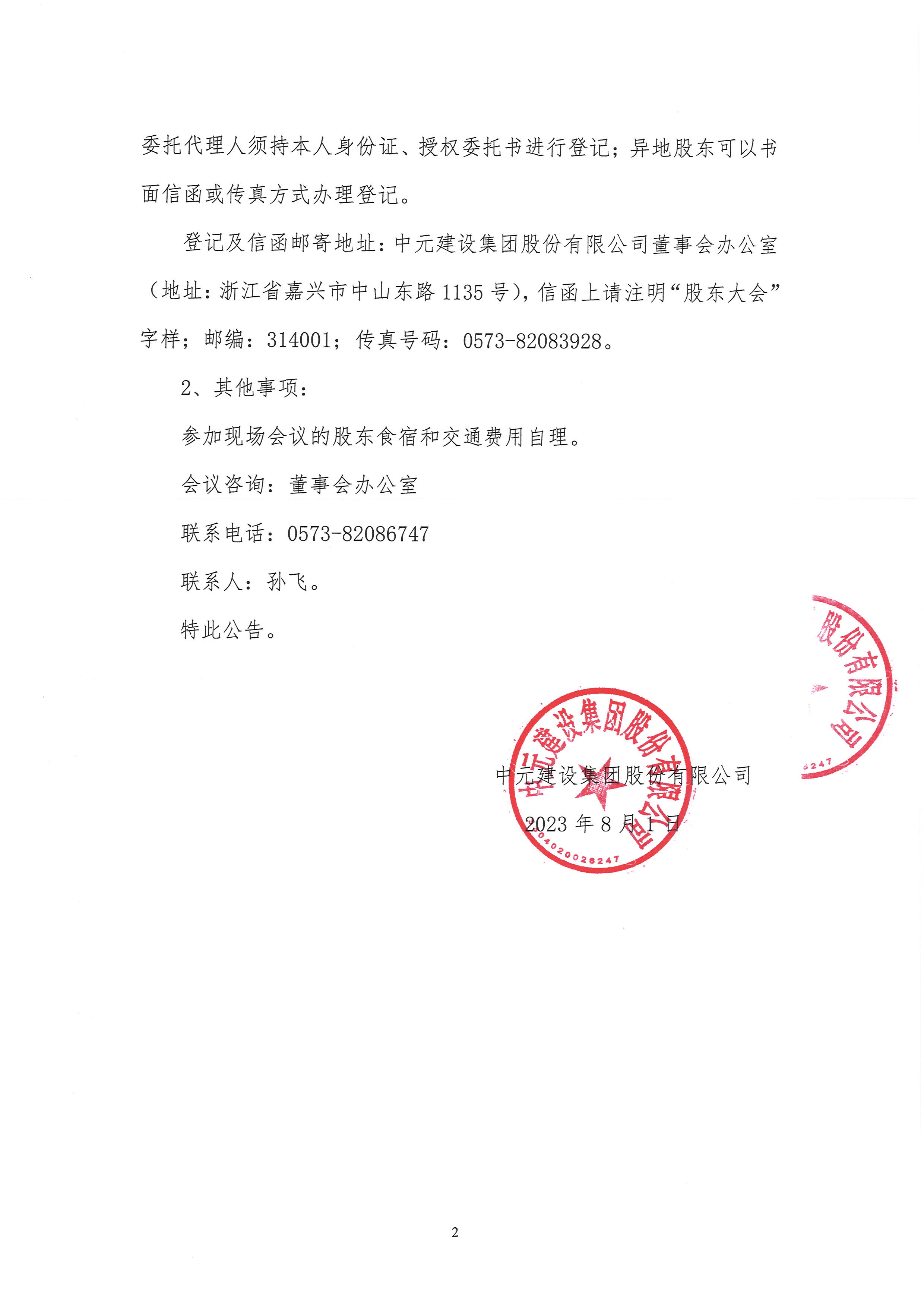 中元建设集团股份英国beat365官方网站关于召开2023年第一次股东大会的通知